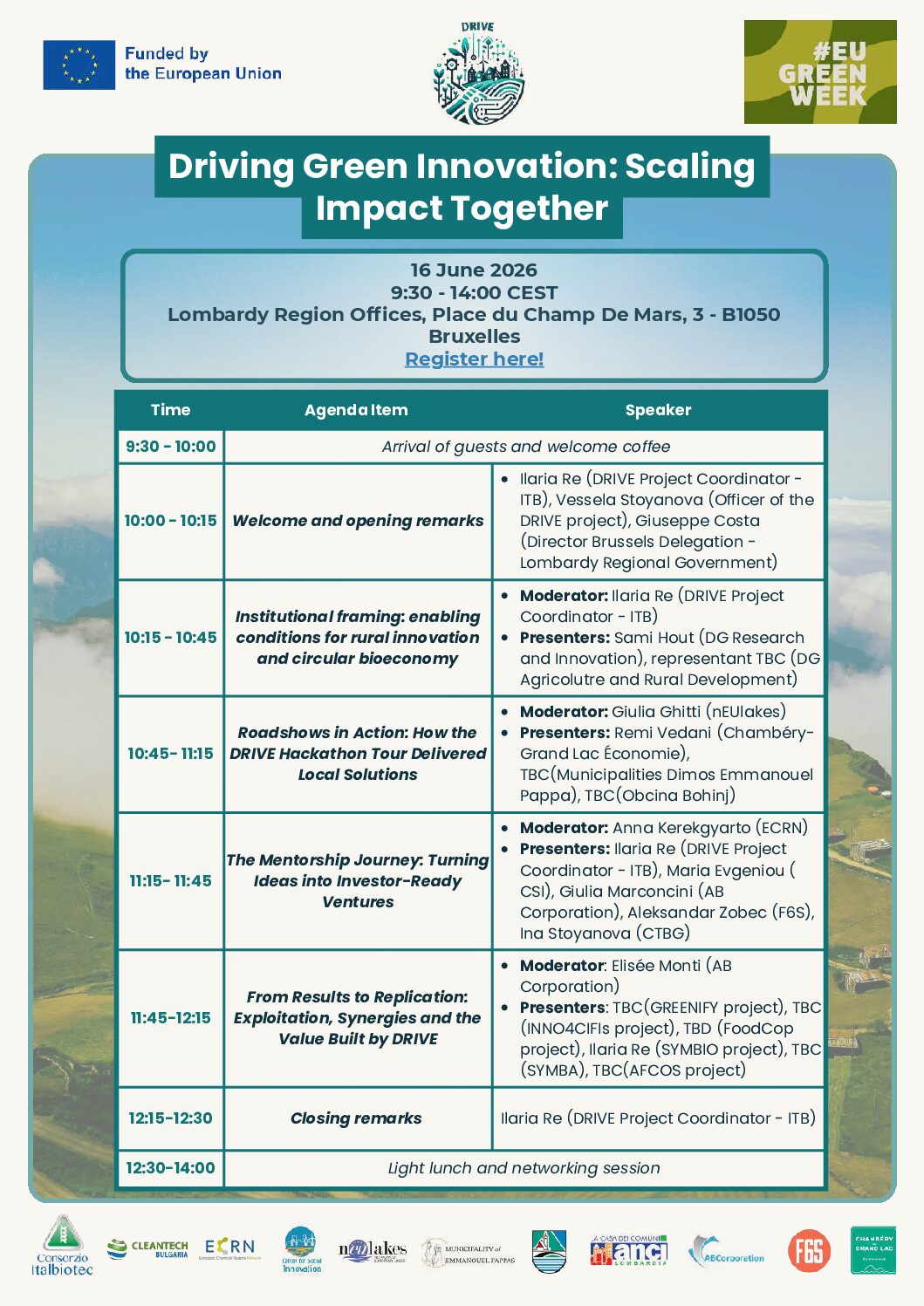 As an official Partner Event of the EU Green Week 2026, the DRIVE Final Event will host a series of high‑level sessions focused on the following key topics: